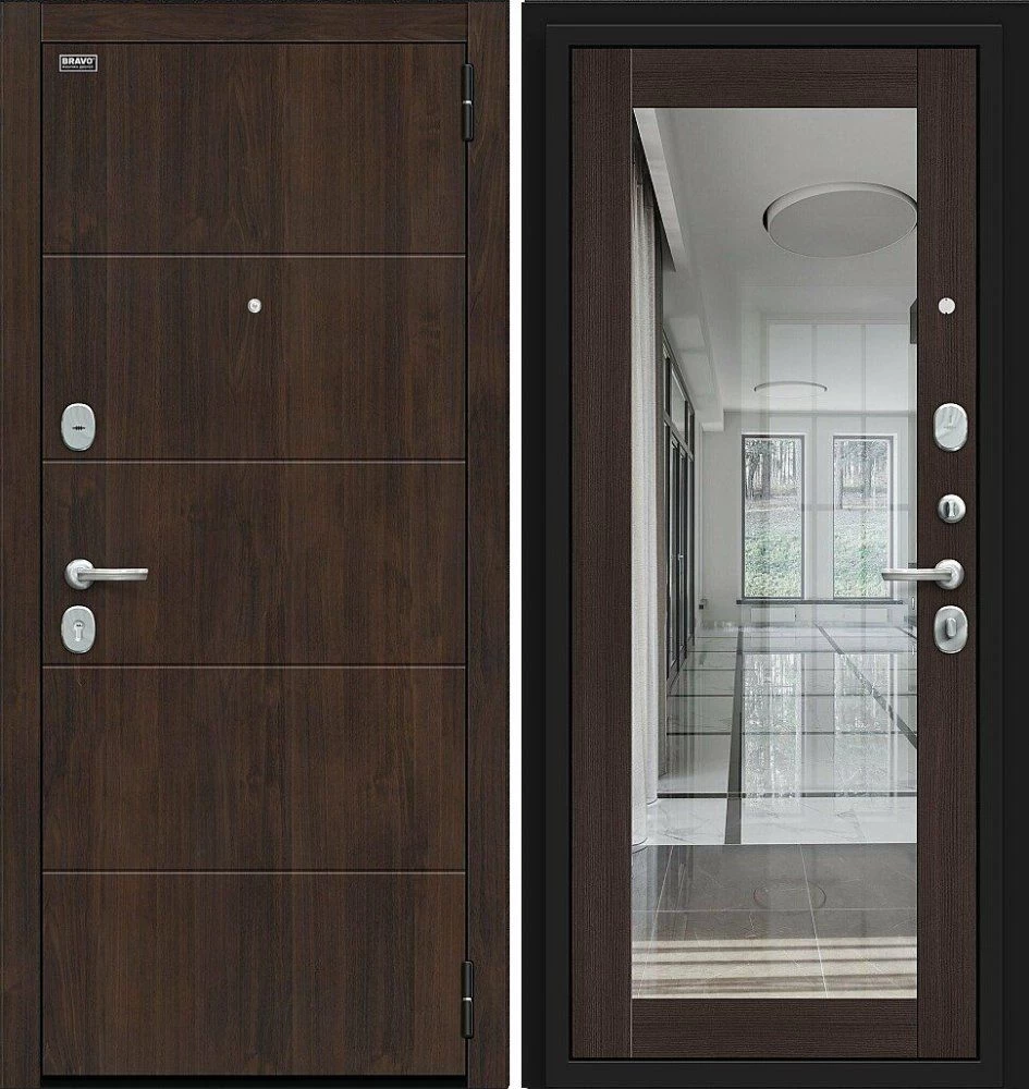 Надежная входная Дверь Браво Флэт Kale Almon/Wenge Veralinga премиум класса по цене 42 627 руб. Большая толщина стали защитит от проникновения в ваш дом, квартиру или коттедж. Используется очень качественная фурнитура: замки, цилиндры, ручки, защелки. Покрытие и отделка двери изготовлено под внимательным контролем производителя. Дверь имеет долгий срок службы и гарантию.