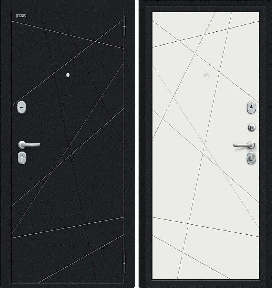 Надежная входная Дверь Браво Граффити-5 Букле черное/Super White премиум класса по цене 30 897 руб. Большая толщина стали защитит от проникновения в ваш дом, квартиру или коттедж. Используется очень качественная фурнитура: замки, цилиндры, ручки, защелки. Покрытие и отделка двери изготовлено под внимательным контролем производителя. Дверь имеет долгий срок службы и гарантию.