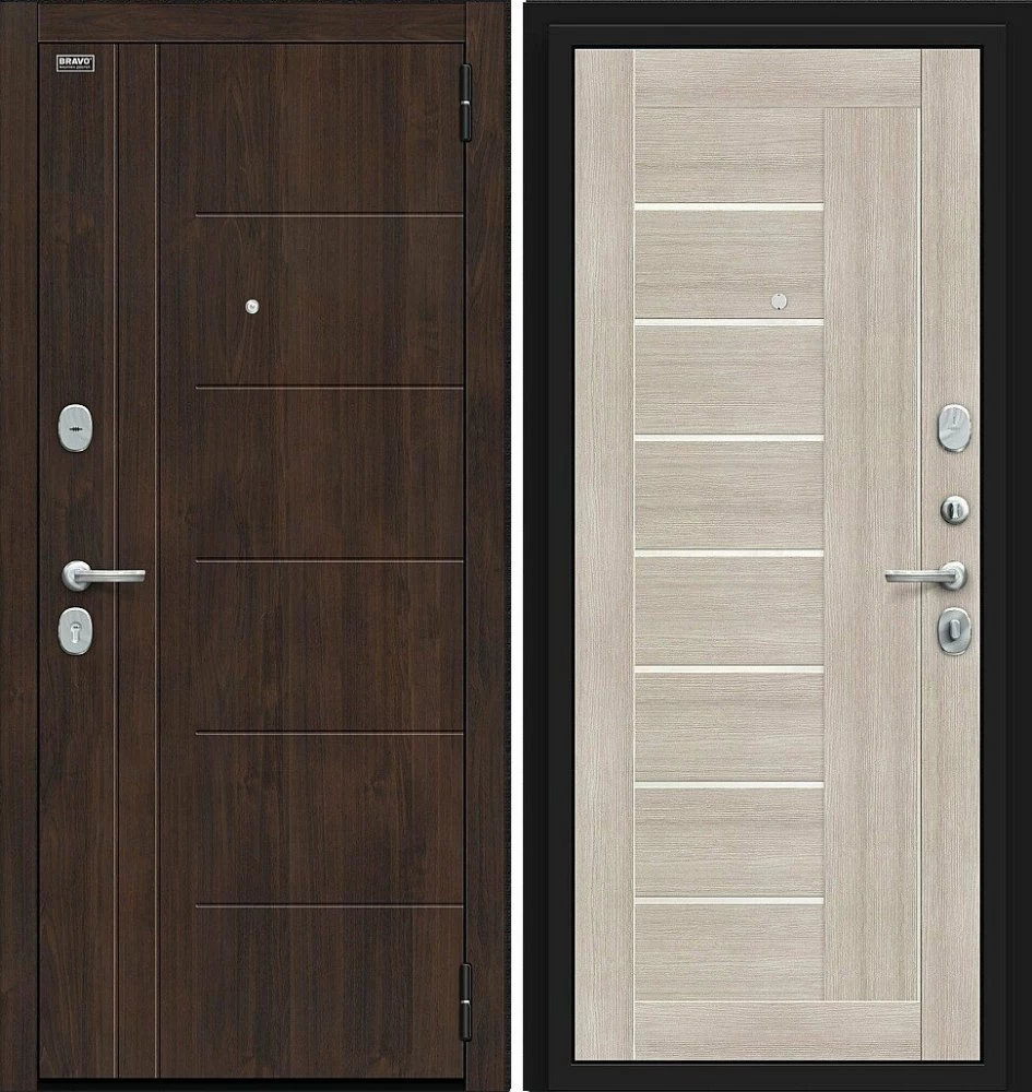 Надежная входная Дверь Браво Модерн Kale Almon/Cappuccino Veralinga премиум класса по цене 40 027 руб. Большая толщина стали защитит от проникновения в ваш дом, квартиру или коттедж. Используется очень качественная фурнитура: замки, цилиндры, ручки, защелки. Покрытие и отделка двери изготовлено под внимательным контролем производителя. Дверь имеет долгий срок службы и гарантию.