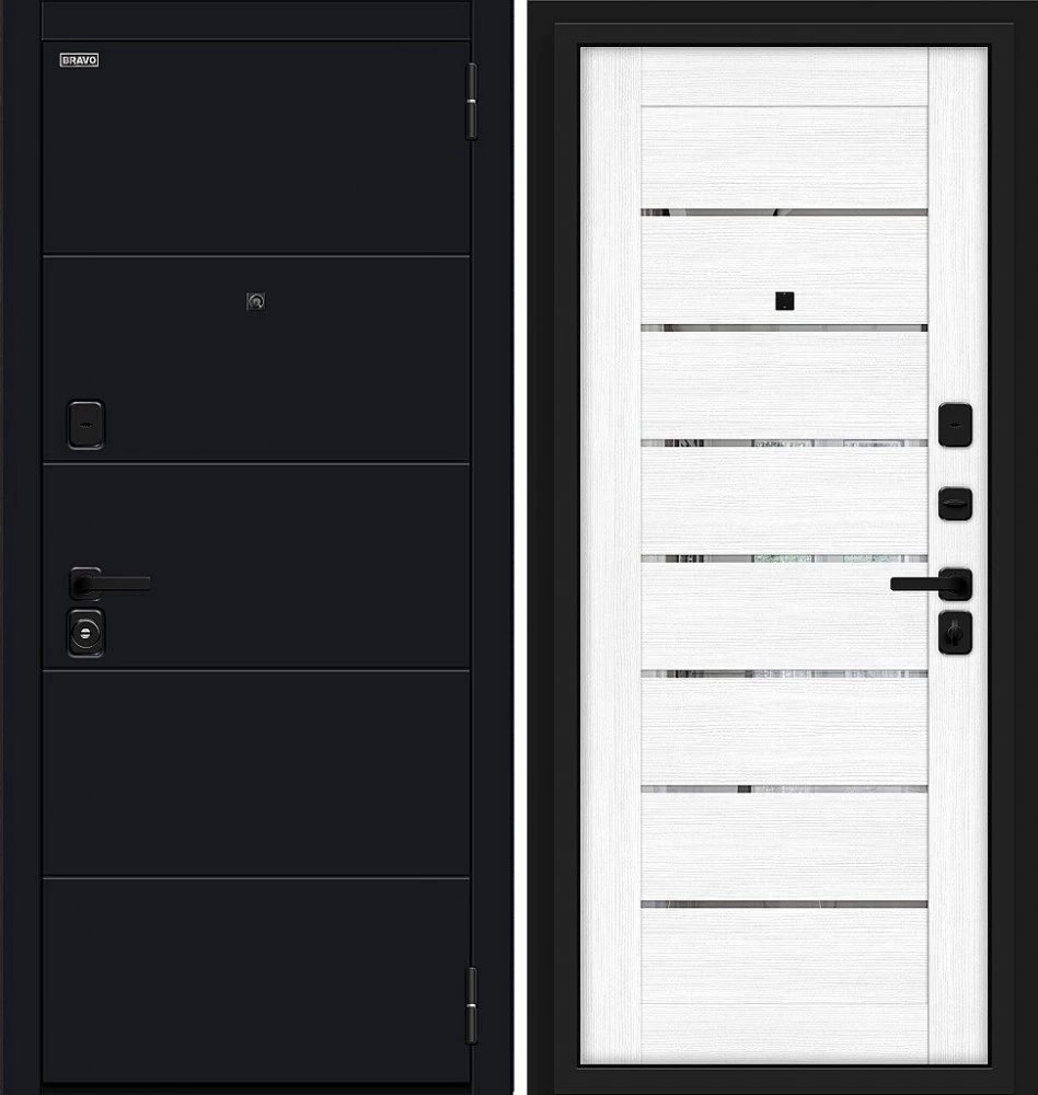 Надежная входная Дверь Браво Прайд Total Black/Snow Melinga премиум класса по цене 40 677 руб. Большая толщина стали защитит от проникновения в ваш дом, квартиру или коттедж. Используется очень качественная фурнитура: замки, цилиндры, ручки, защелки. Покрытие и отделка двери изготовлено под внимательным контролем производителя. Дверь имеет долгий срок службы и гарантию.