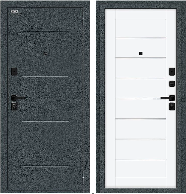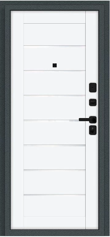 Надежная входная Дверь Браво Техно/SBlack Старк антрацит/White Silk премиум класса по цене 35 077 руб. Большая толщина стали защитит от проникновения в ваш дом, квартиру или коттедж. Используется очень качественная фурнитура: замки, цилиндры, ручки, защелки. Покрытие и отделка двери изготовлено под внимательным контролем производителя. Дверь имеет долгий срок службы и гарантию.