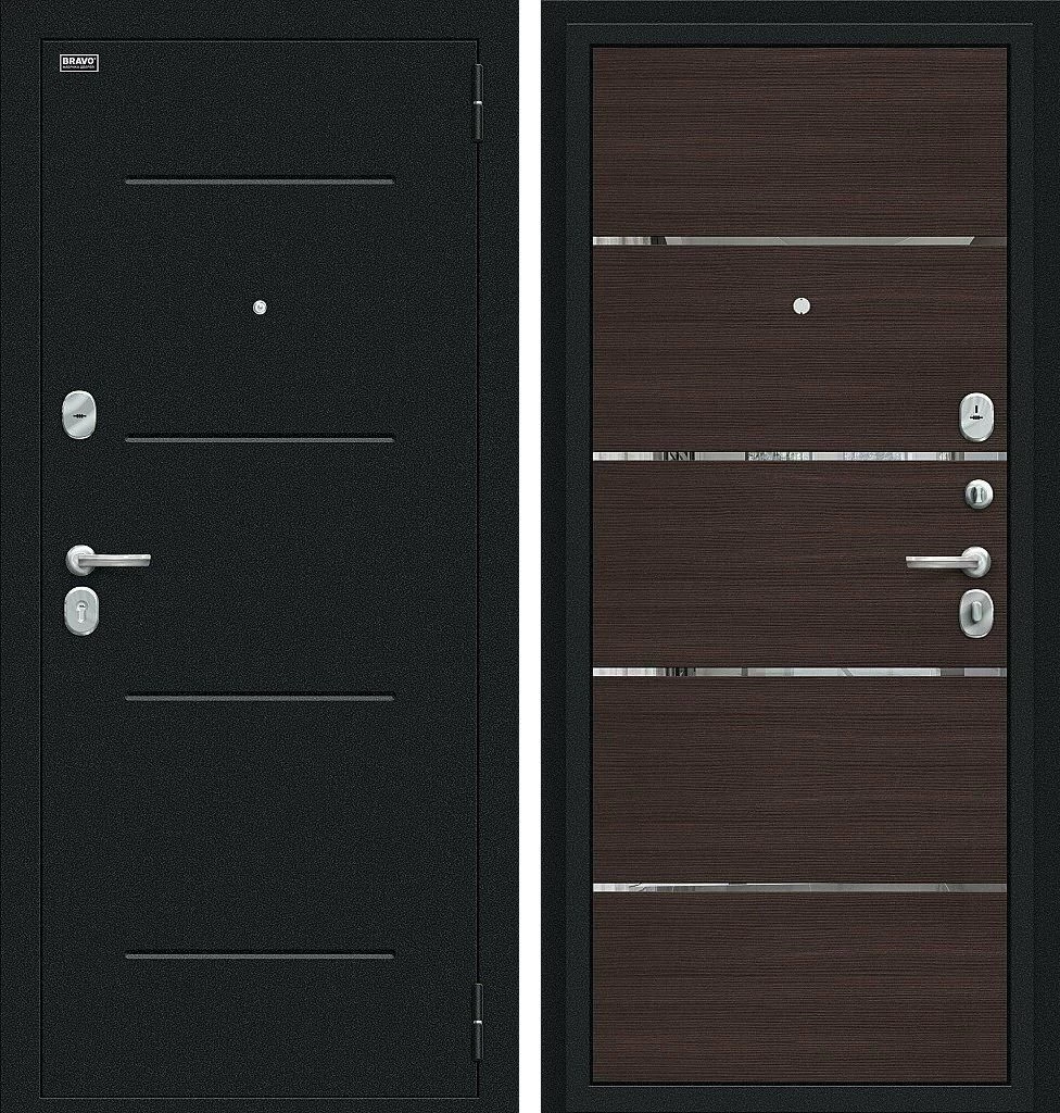 Надежная входная Входная дверь Лайн Букле черное/Wenge Veralinga BR4636 премиум класса по цене 31 375 руб. Большая толщина стали защитит от проникновения в ваш дом, квартиру или коттедж. Используется очень качественная фурнитура: замки, цилиндры, ручки, защелки. Покрытие и отделка двери изготовлено под внимательным контролем производителя. Дверь имеет долгий срок службы и гарантию.