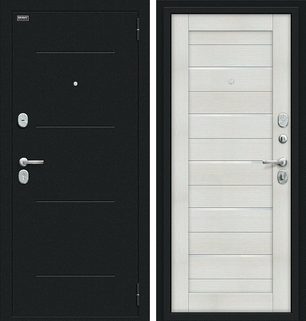 Надежная входная Входная дверь Техно Kale Букле черное/Bianco Veralinga BR4465 премиум класса по цене 35 613 руб. Большая толщина стали защитит от проникновения в ваш дом, квартиру или коттедж. Используется очень качественная фурнитура: замки, цилиндры, ручки, защелки. Покрытие и отделка двери изготовлено под внимательным контролем производителя. Дверь имеет долгий срок службы и гарантию.