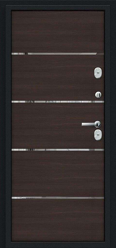 Надежная входная Входная дверь Thermo Лайн Букле черное/Wenge Veralinga BR4579 премиум класса по цене 49 468 руб. Большая толщина стали защитит от проникновения в ваш дом, квартиру или коттедж. Используется очень качественная фурнитура: замки, цилиндры, ручки, защелки. Покрытие и отделка двери изготовлено под внимательным контролем производителя. Дверь имеет долгий срок службы и гарантию.