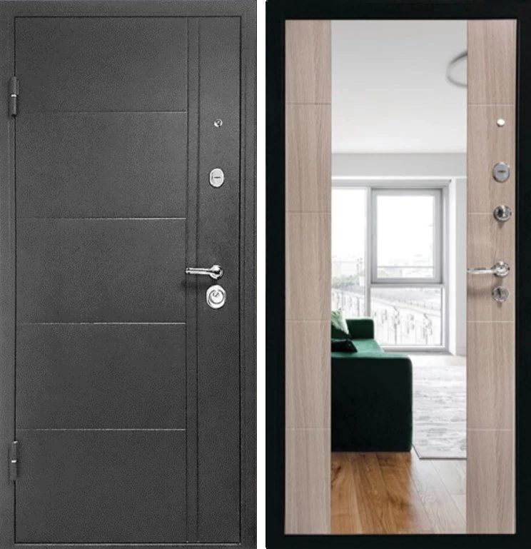 Надежная входная Дверь Эверест Зеркало Сандал Серый премиум класса по цене 34 607 руб. Большая толщина стали защитит от проникновения в ваш дом, квартиру или коттедж. Используется очень качественная фурнитура: замки, цилиндры, ручки, защелки. Покрытие и отделка двери изготовлено под внимательным контролем производителя. Дверь имеет долгий срок службы и гарантию.