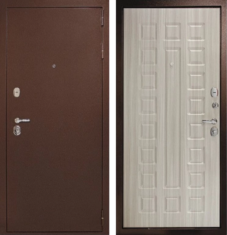 Надежная входная Дверь Рубикон 1 Медь Сандал белый премиум класса по цене 33 647 руб. Большая толщина стали защитит от проникновения в ваш дом, квартиру или коттедж. Используется очень качественная фурнитура: замки, цилиндры, ручки, защелки. Покрытие и отделка двери изготовлено под внимательным контролем производителя. Дверь имеет долгий срок службы и гарантию.