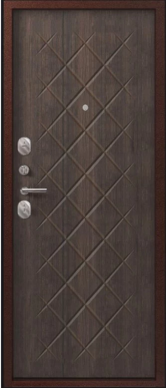 Надежная входная Дверь V-02 медь антик - венге премиум класса по цене 37 677 руб. Большая толщина стали защитит от проникновения в ваш дом, квартиру или коттедж. Используется очень качественная фурнитура: замки, цилиндры, ручки, защелки. Покрытие и отделка двери изготовлено под внимательным контролем производителя. Дверь имеет долгий срок службы и гарантию.