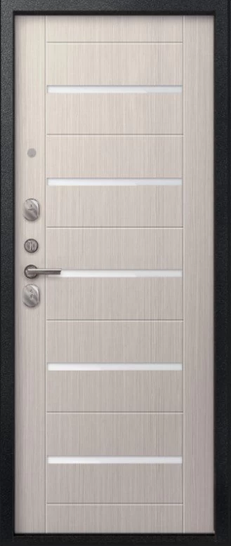 Надежная входная Дверь V-05 Черный муар - Лиственница светлая премиум класса по цене 42 827 руб. Большая толщина стали защитит от проникновения в ваш дом, квартиру или коттедж. Используется очень качественная фурнитура: замки, цилиндры, ручки, защелки. Покрытие и отделка двери изготовлено под внимательным контролем производителя. Дверь имеет долгий срок службы и гарантию.